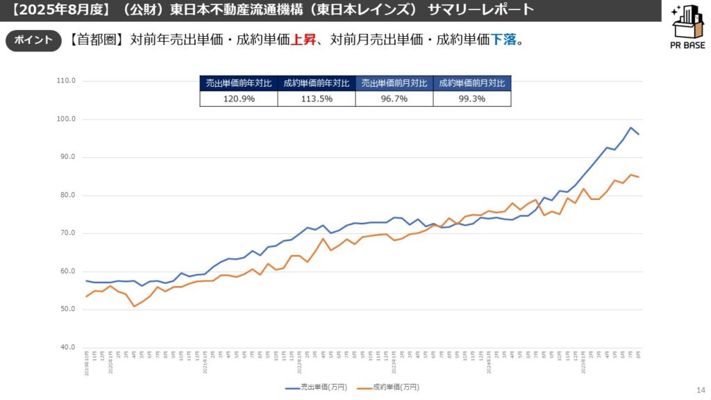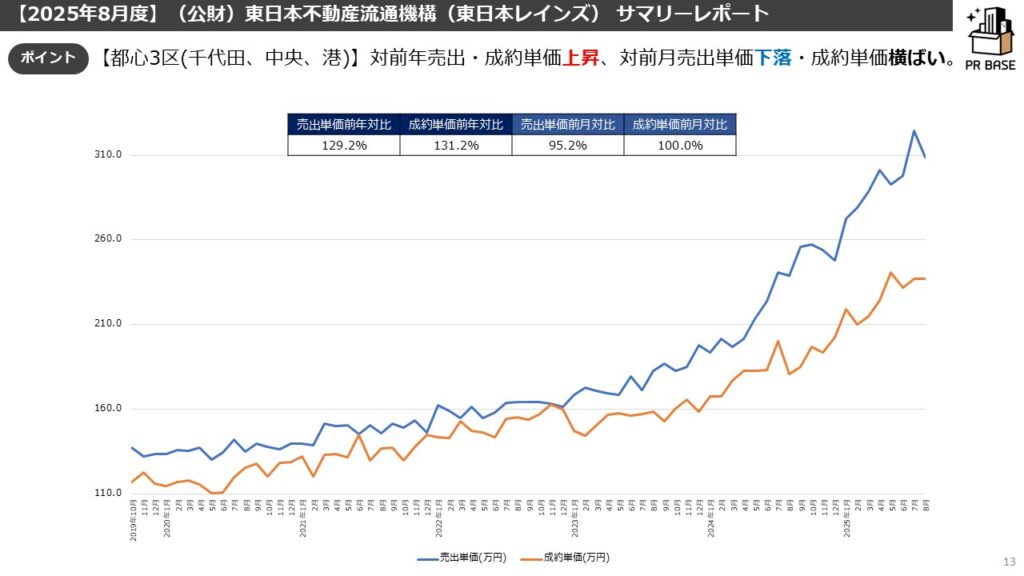 毎月同様のことを申し上げていますが、都心エリアの成約単価が引っ張る形で中長期的には上昇です。