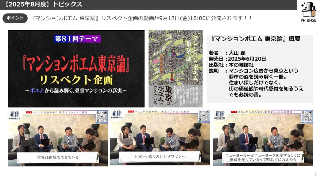 9月12日(金)18:00公開予定で東京不動産マニア『マンションポエム 東京論』リスペクト企画』が公開されます!