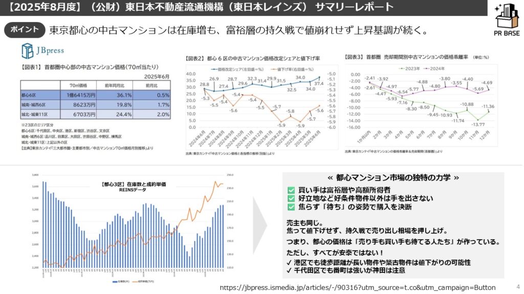 この謎が少し解けたので次のスライド【都心部在庫増なのに価格が上がり続けるワケ】にまとめました。