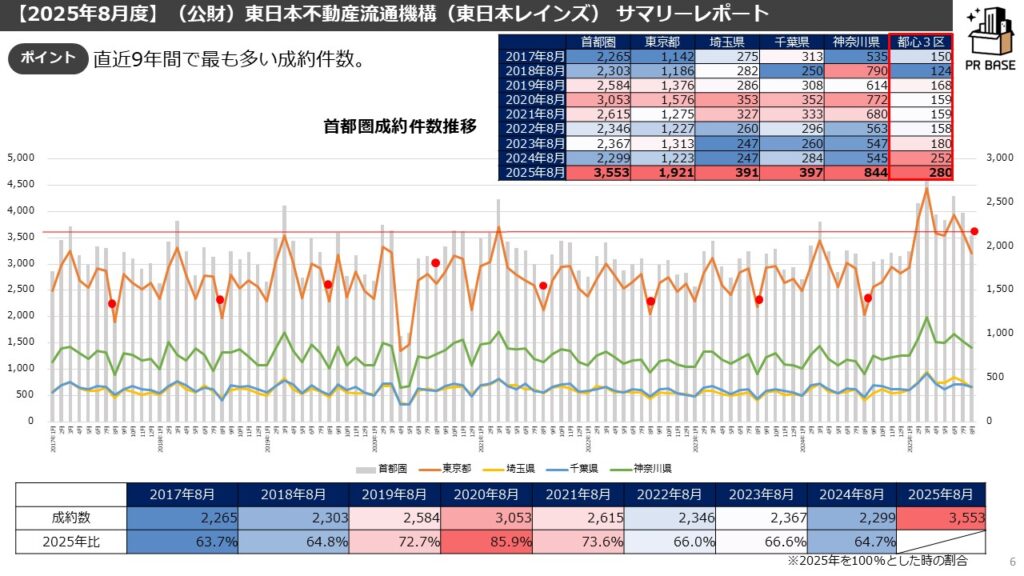 スライドの通り、1都3県全体では、直近9年間で最も多い成約件数になりました。