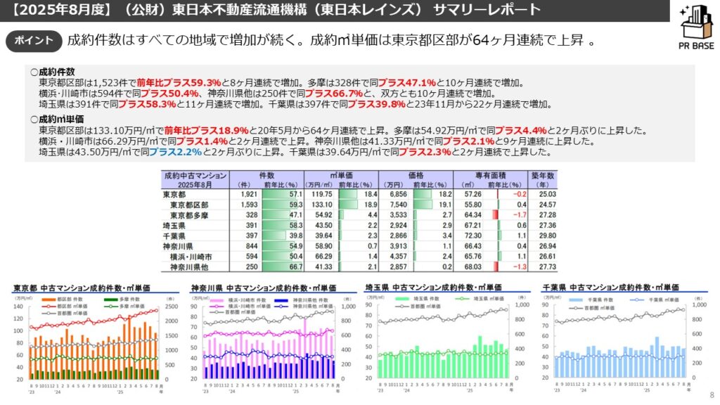 成約件数は10ヶ月連続で増加、成約㎡単価は64ヶ月連続で上昇、1990年9月以来の水準になっています。