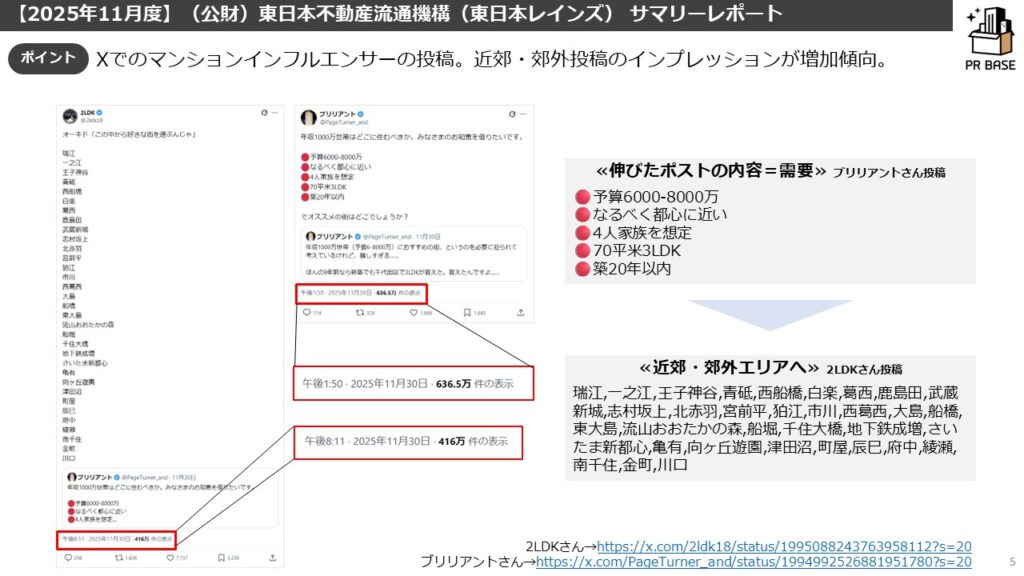今月気になったのは、Xでのマンションインフルエンサーの投稿において、近郊・郊外投稿のインプレッションが増加していることです。