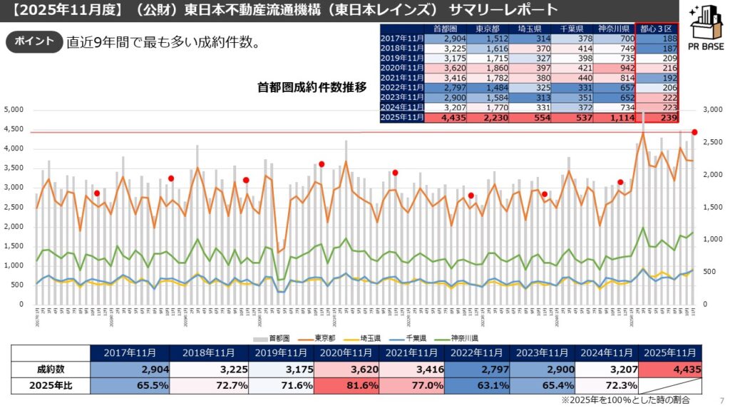 スライドの通り、1都3県全体では、直近9年間で最も多い成約件数になりました。
