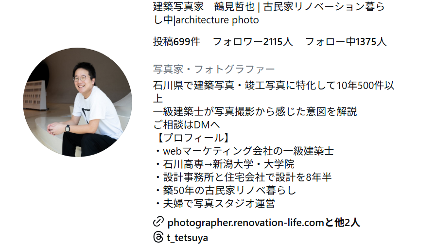 建築士のお仕事をしながら奥様と写真スタジオを運営されてるそうで、、、素敵ですね。写真家ということで、これからオススメする投稿(写真)もほんとに素晴らしいのでフォロー必須です!