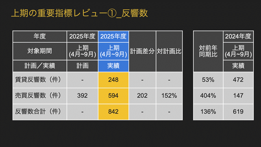 ないけんぼーいずの成長を象徴するもう一つの具体的な指標として、「売買反響が対前年同期比で404%成長」という大幅な伸びがあります。