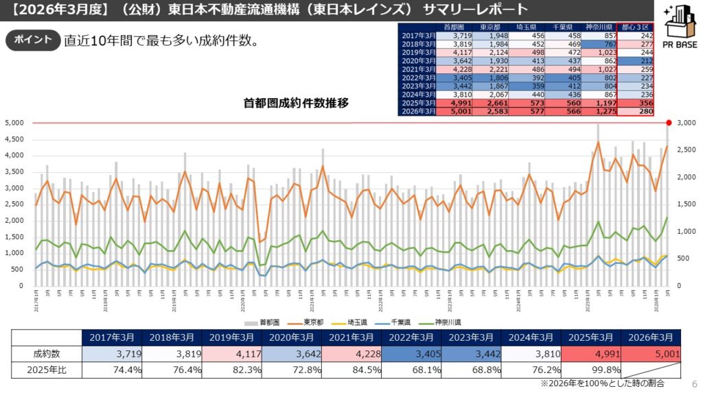 スライドの通り、1都3県全体では、直近10年間で最も多い成約件数になりました。