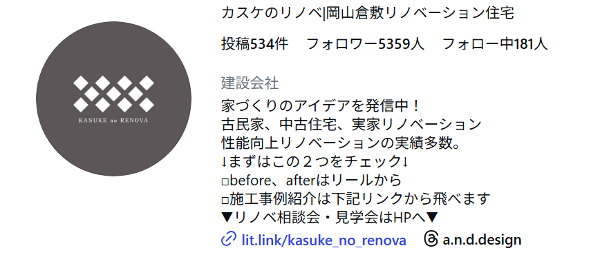 不動産Instagram「カスケのリノベ|岡山倉敷リノベーション住宅」とは?