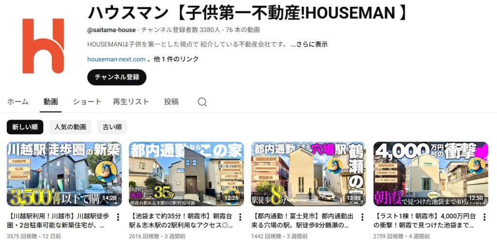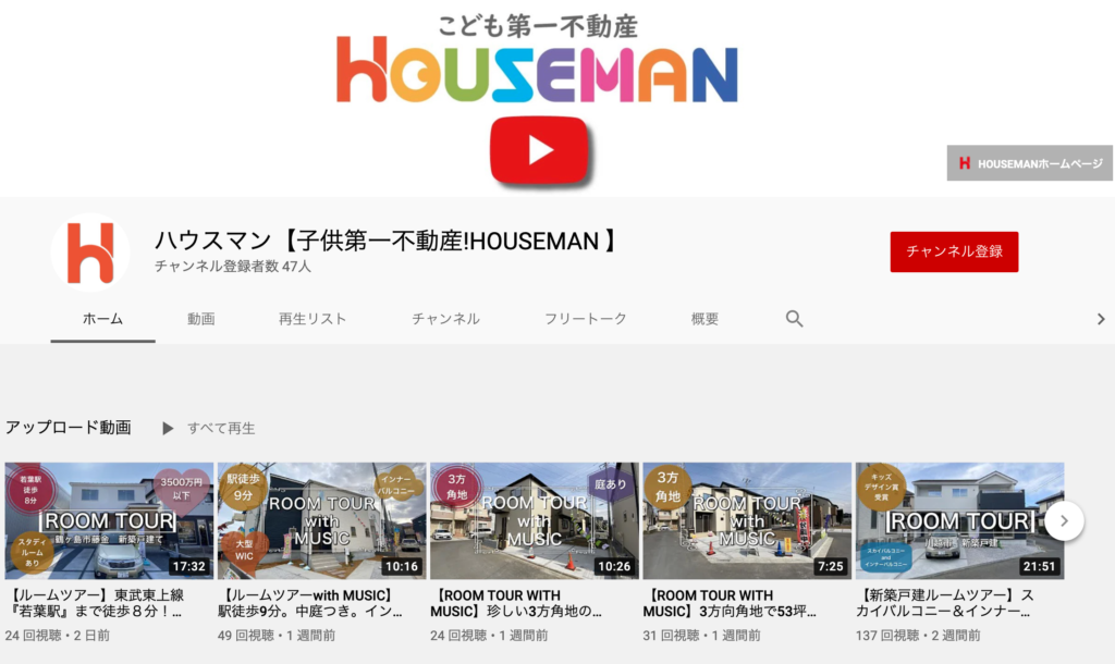 色々不動産会社のYouTubeを探している中で、たどり着いたハウスマン!子供第一不動産!第一印象はYouTubeチャンネルのサムネイルがきれいなこと、子供第一を謳っている珍しいキャッチフレーズに惹かれました。