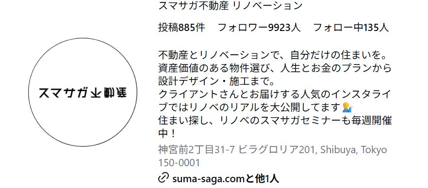 個人的に今一番物件軸でのSNS集客に最も適していると思っているInstagramですが本日は中古マンション×リノベーションのスマサガ不動産さんのアカウントのご紹介です!