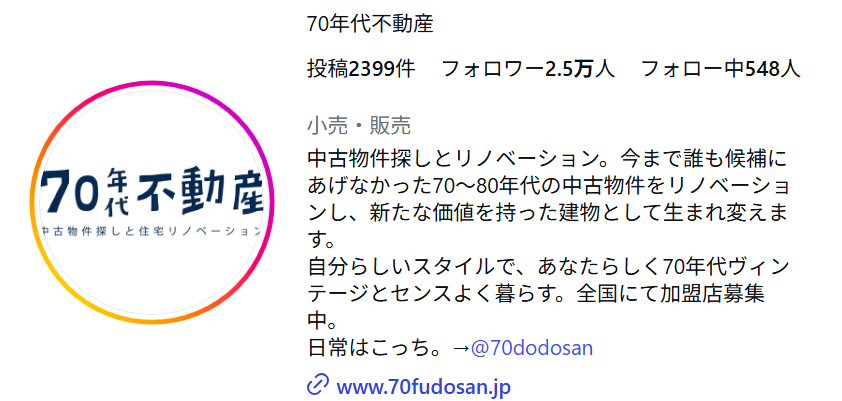 70年代不動産のInstagramアカウント概要