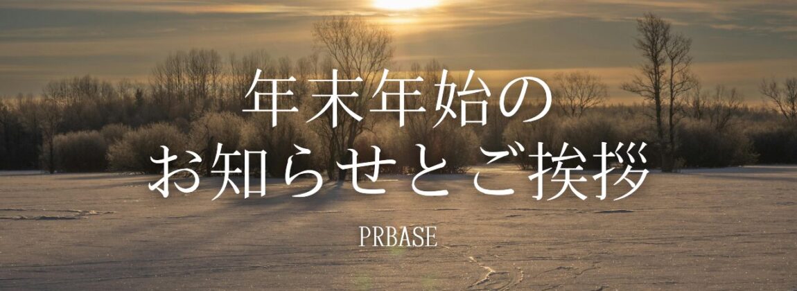 いつも PR BASE をご覧いただき、ありがとうございます。誠に勝手ながら、12月27日(土)〜1月4日(日) の期間、年末年始休業とさせていただきます。休業期間中にいただいたお問い合わせにつきましては、1月5日(月)以降、順次対応させていただきます。ご返信までお時間をいただく場合がございますが、何…
